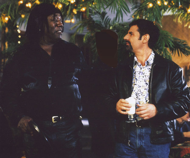 Joe with Saxophonist Clarence Clemons on the set of VIPER