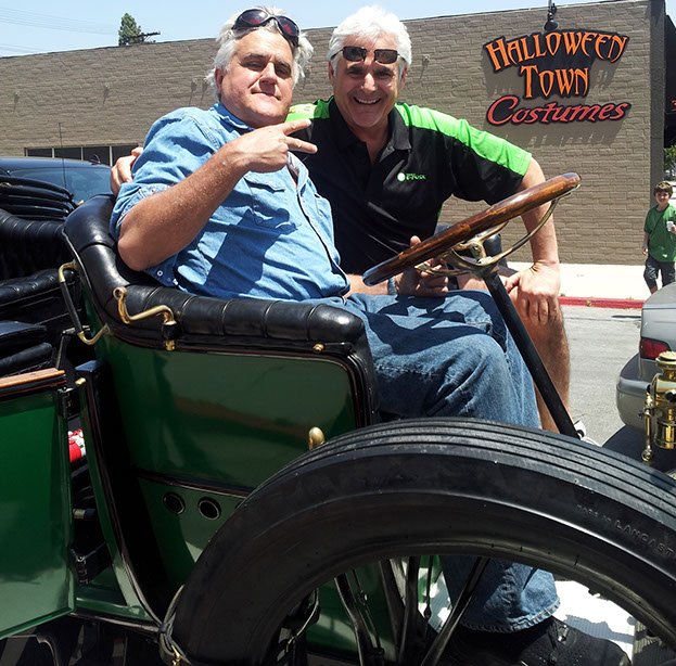 Joe with Jay Leno in Jay's steam run vehicle-Burbank CA